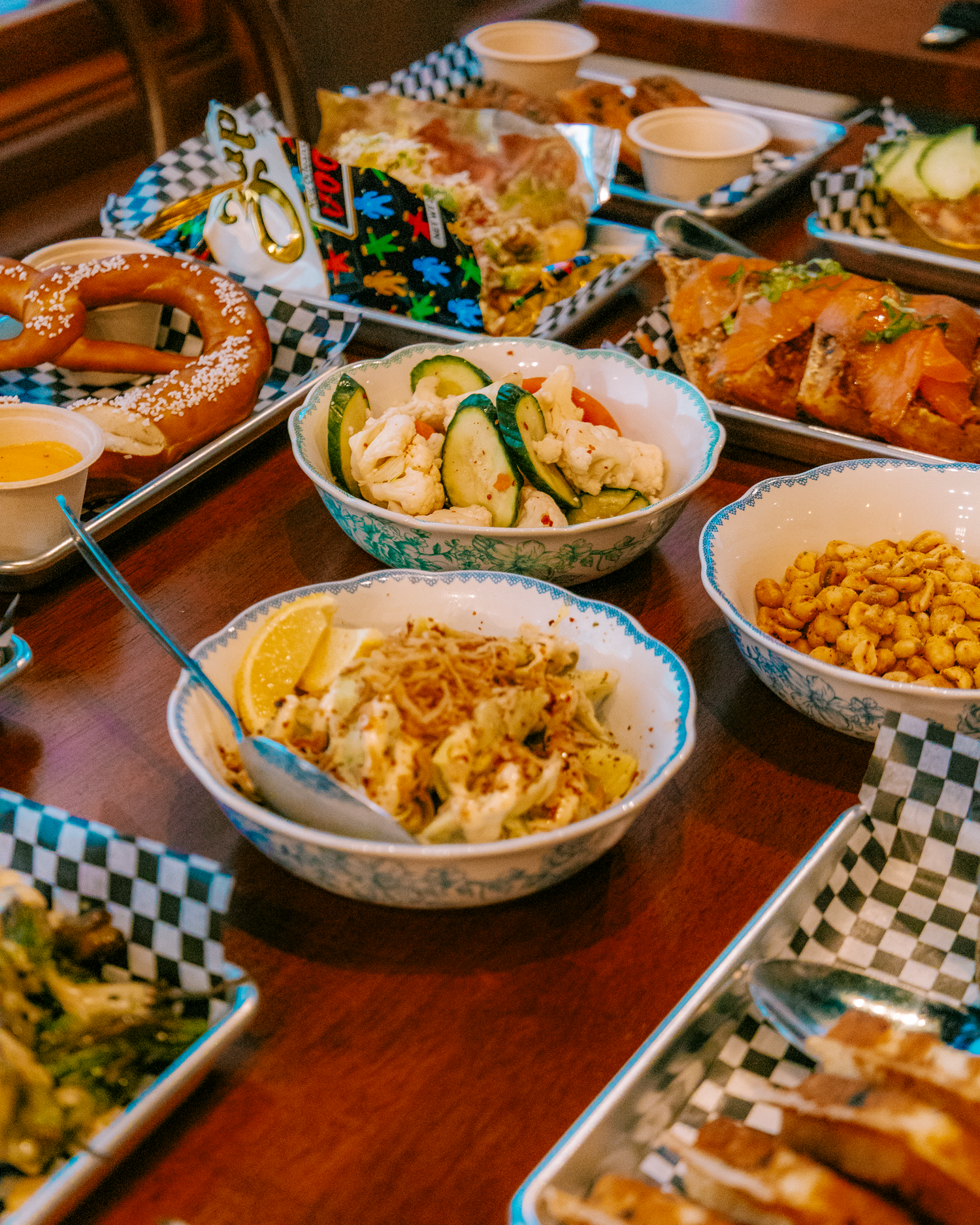 We will also have fun, small plates by our Chef Jeffrey Amber: Roasted Shishito Peppers served with Japanese seasoning and miso aioli, Foxy Nachos with kettle chips, salami, castelvetrano olives, pepperoncini, fontina, aged balsamic and parm, tinned fish plates and an assortment of savory sourdough waffles, like our Corn Dog Waffle served smoked cheddar, beer cheese and mustard.